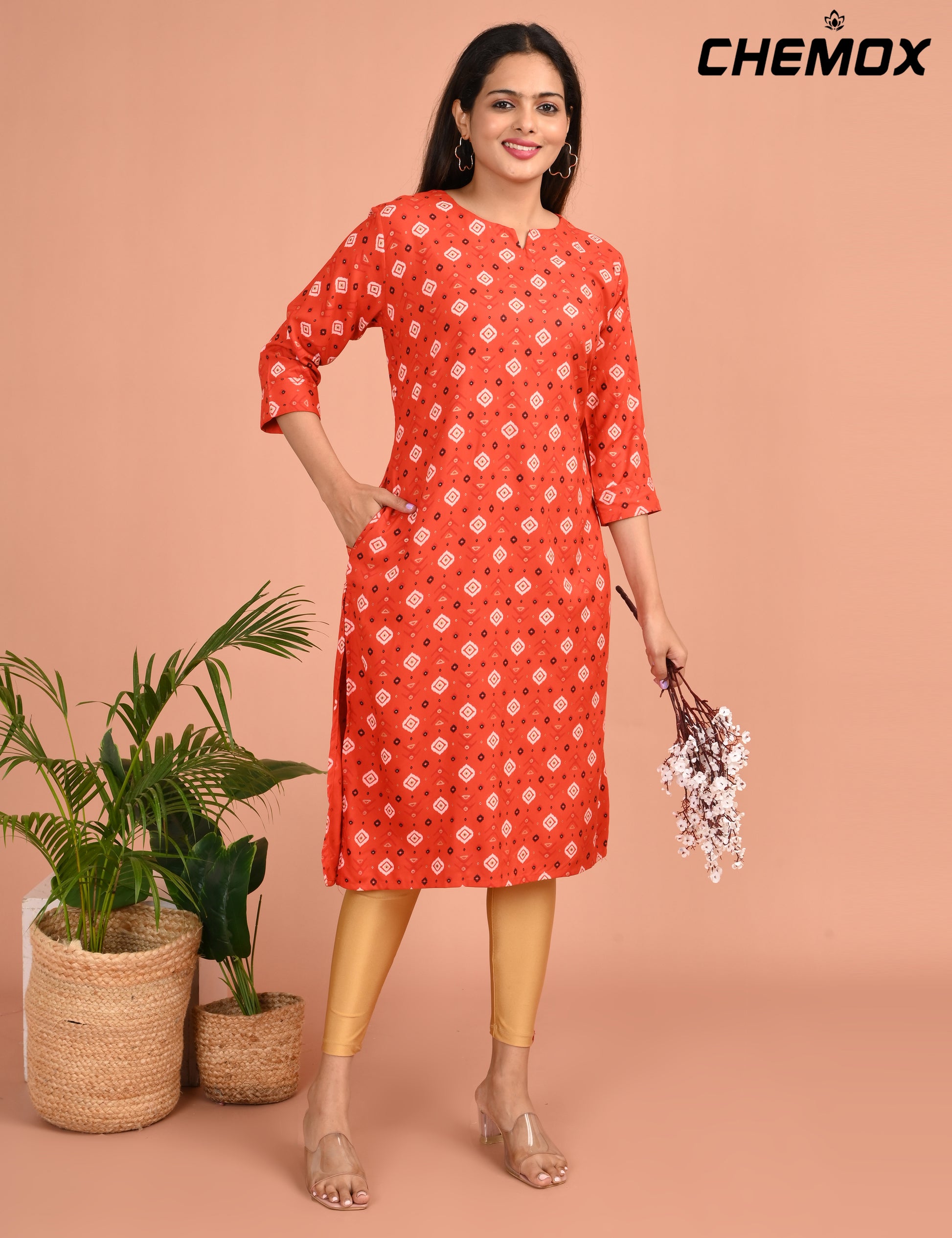 "Designed for modern women, the CHEMOX DESIGN NECK WITH POCKET offers timeless elegance and reliable comfort."